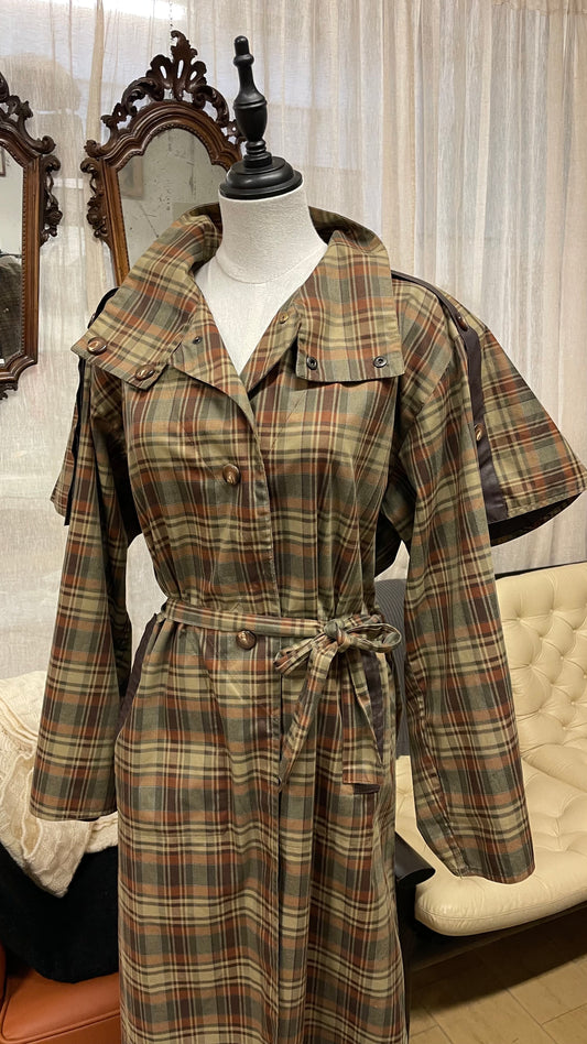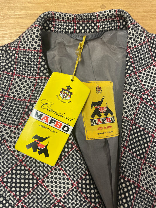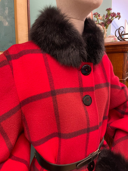 Cappotto anni 80 in pura lana vergine con fantasia a grandi quadrati rossi