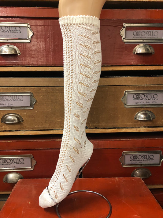 Calzini lunghi anni 70 in cotone lavorato_bianco