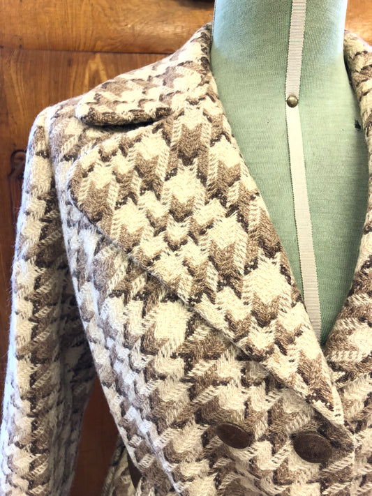 Cappotto anni 80 donna in misto lana spinapesce grigio e nero.