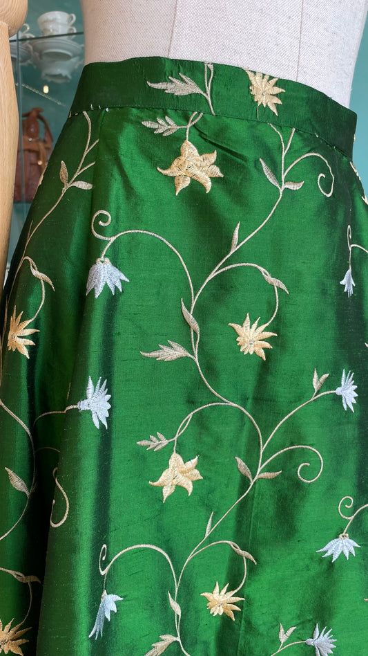 Gonna vintage in shantung verde sartoriale - tg.46/48