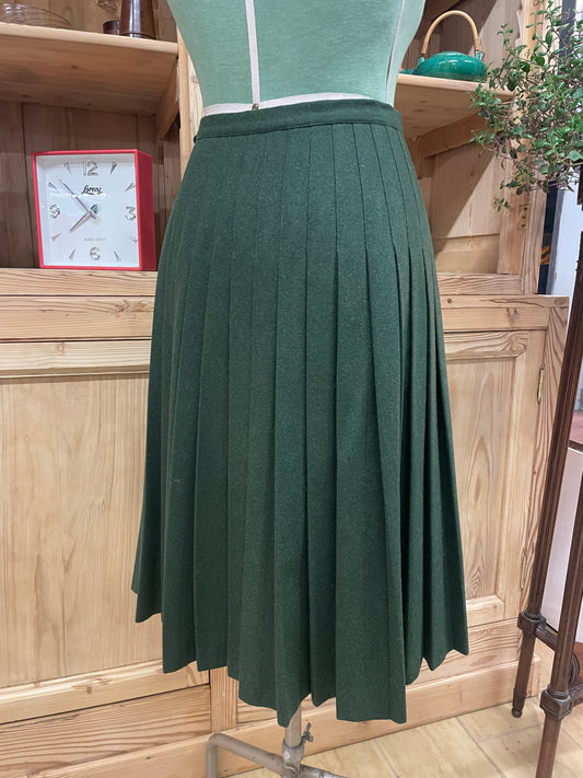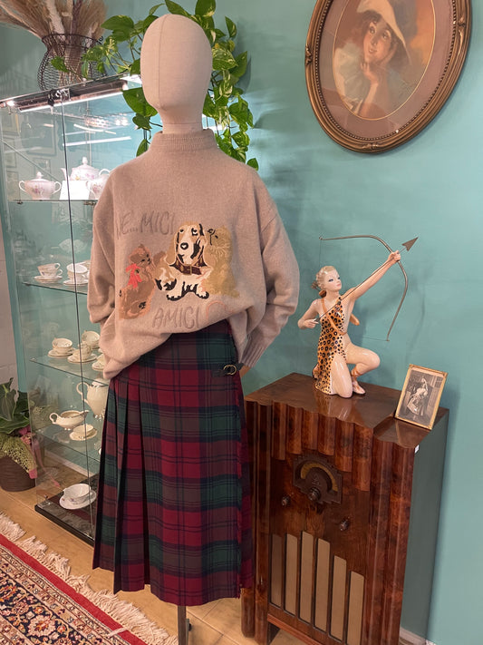 Gonna scozzese a pieghe nei toni del bordeaux e del verde.