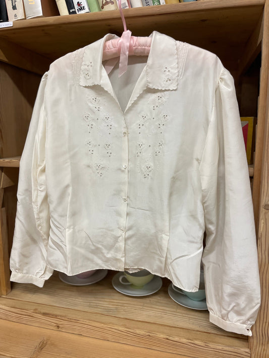 AusverkauftCamicetta in pura seta anni 50 ricamata