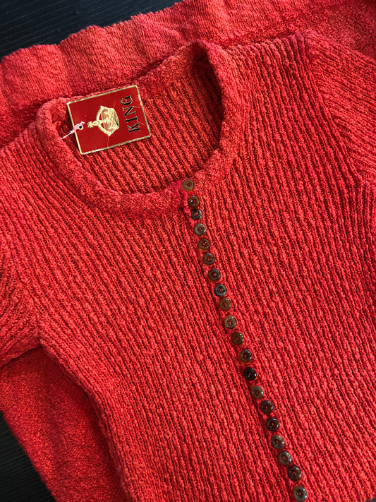 Abitino anni 60/70 in maglia bouclè color rosso ciliegia