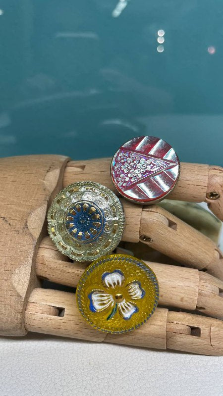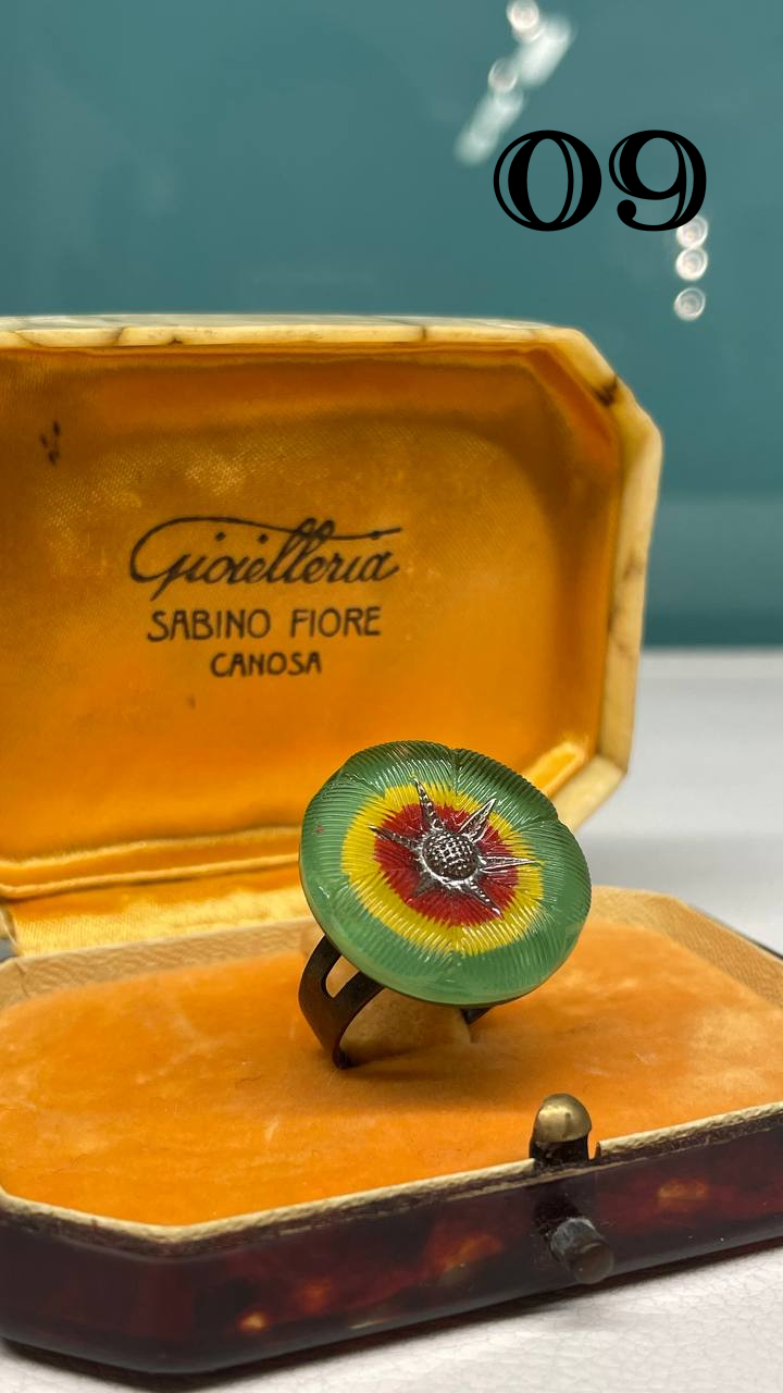 Anello realizzato con bottone originale in vetro cecoslovacco dei primi ’900.