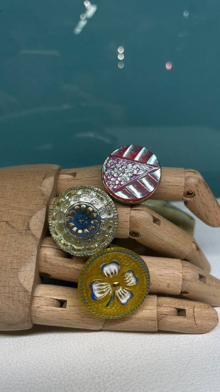 Anello realizzato con bottone originale in vetro cecoslovacco dei primi ’900.