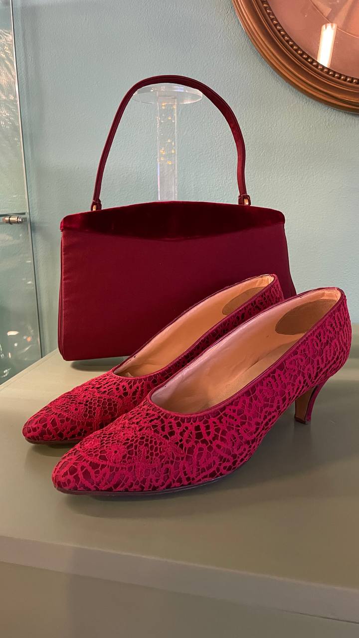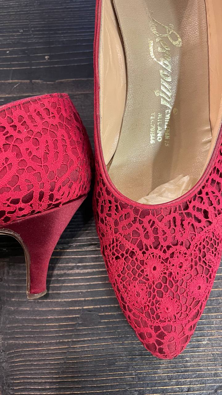 Decollete col.Burgundy fine anni 50 in raso di seta e pizzo - nr. 39,5/40