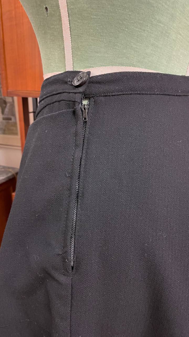 Meravigliosa gonna vintage realizzata a mano in gabardine nero di qualità, modello raffinato della fine degli anni 40.